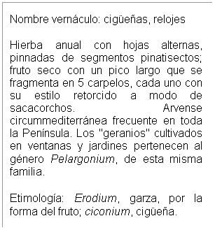 Cuadro de texto:   Erodium ciconium (L.) L'Hér